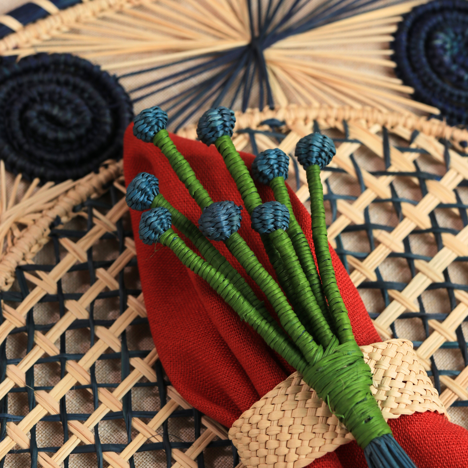 Each piece is meticulously woven from natural iraca palm by Colombian artisans, bringing texture, color, and artisanal warmth to any dining setting.