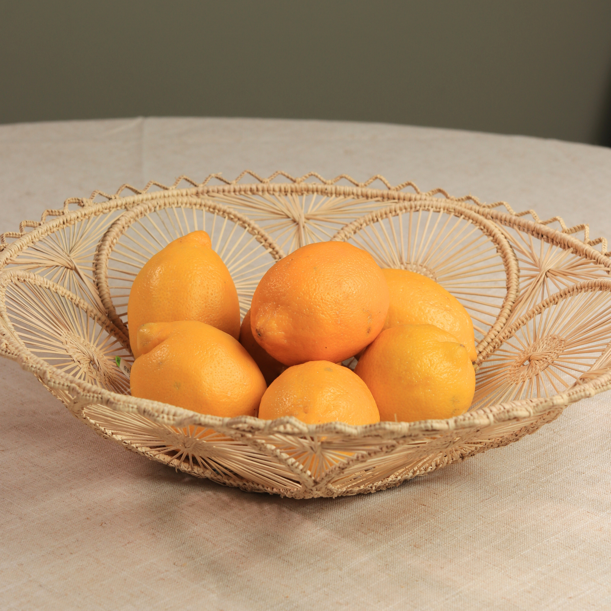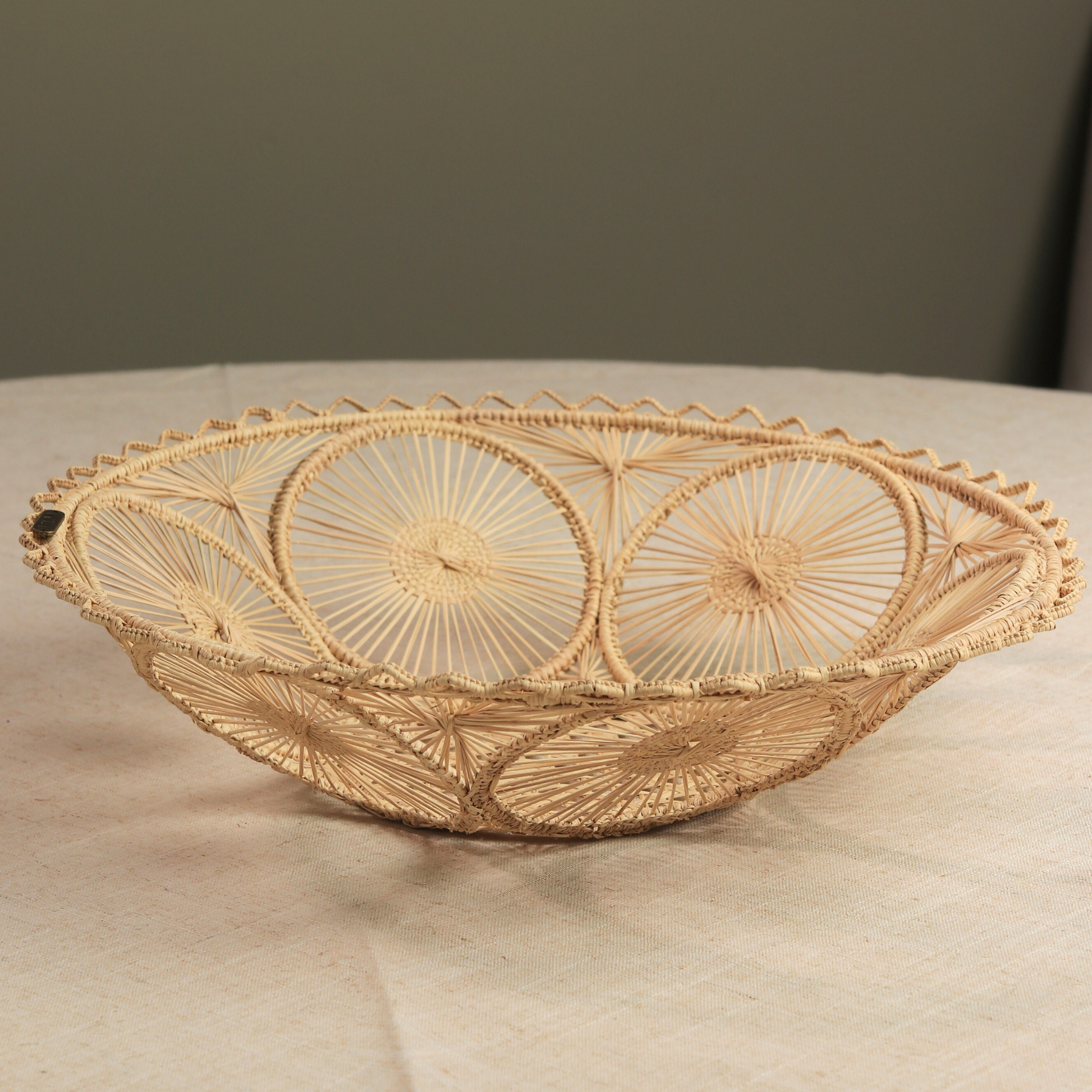 Each basket is woven from natural iraca palm by artisans, featuring intricate circular sunbursts that create a stunning visual texture and airy, organic feel.
